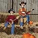 They have leg, knee and ankle joints so the legs can be positioned on a mantle, stairs, table or hay bale