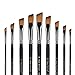 [9 Sizes of Artist Angled Brushes]: This artist angled paint brush set provides a wide variety of 9 brush sizes (0, 2, 4, 6, 8, 10, 12, 14, 16) to help you achieve maximum desired painting result. Paint Smoothly and Evenly, these artist angled paint brushes offer long wear and excellent color control with brush strokes. Filaments hold color and release smoothly and evenly