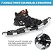 Double Ratchet Binding:Fully adjustable ratchet binding with fast lock and loosen system for easy to put on and take off. It can be adjusted according to the size and tightness of shoes, suitable for various winter shoe styles and sizes. The one-buckle tightening mechanism combined with the TPU heel strap provides efficient support.
