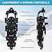 Lightweight and Durable:Our snowshoes are made of lightweight aluminum frame and durable HDPE decking, which will not easily crack in extremely cold winter. Provide nice floatability and reliability on snow to keep your steps light and controllable