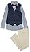 Izod 4-piece set includes: tailored vest, button-down shirt, flat front pant and tie. This set is designed with a neat and tailored fit for a flattering grown up look