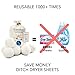 SAVE TIME, MONEY, AND ENERGY! Eco-friendly and reusable for 1000+ loads each ball. Leaves your laundry NATURALLY SOFT, reduces wrinkles and static cling, without harming your laundry with synthetic chemicals like PVC or tennis balls. Plus, helps you reduce drying time by 20-40%. NO LINT! Perfect for dark, white, and colored loads.