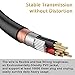 Fantastic Audio Quality: Gold Plated connectors and copper of UGREEN RCA audio cable provide maximum's conductivity and durability, ensuring optimal stereo audio transmission. This RCA Y cable features minimal sound loss, minimal interference, and overall crisp and high-quality audio. With the help of this 1/8 to RCA audio cable, no longer suffer the radio frequency interference (RFI) and electromagnetic interference (EMI)