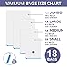 18 combo includes: 4 jumbo bags (39.4 x 27.5 in) fitting 1 bedding set; 4 large bags (33.5 x 21.7 in) fitting 2 pillows; 4 medium bags (27.5 x19.5 in) fitting 8-10 clothes/towels; 6 small bags (23.5 x 15.7in) fitting 6-8 T-shirts or 4-6 sweaters.