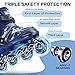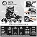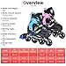 vADJUSTABLE INLINE SKATES - (Please must confirm the size before placing the order);Our inline skates have 4 different Unisex size , S/M/L/XL, and each sizeadjustable , Please make surechoose the correct size via checking enclosed size chart pictures; Andnot forgetadjust the lengthbootthe push button before wearing, you will find that itsconvenientoperate, and kids and youth can usefor many years even though their feet are growing up