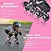 √8 WHEELS ILLUMINATING - Our inline skates for kids come with four illuminating wheels that lights up automatically when you start to skate. The lights are powered by wheels rolling and never need replacement batteries! Just imagine how cool it will be to flash as bright as a lighting bolt in the dark!