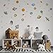 ✈️ Planes Peel and Stick Wall Decals includes: moon, planes, dogs, clouds, stars, bones, bags. Item sizes range from 2"" x 2"" to 20"" x 8"", for a total of 50+ items. Stickers come in a cardboard package in 4 sheets. Sheet size is 15.7" x 11.8". This set of stickers is size S and its size on the wall is 58.6" x 39"
