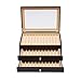 【CONSTRUCTION】Three level case with convenient drawers for optimization of space; Hinged glass lid provides ease of access and dramatic display. Stunning wood pen case with stainless steel design accent.