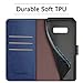 【Large Capacity】This Samsung Galaxy S10E leather wallet case with 9 card holder,1 zipper pocket and 1 cash slots can store your credit cards,ID card, cash and some notes,etc.A detachable wrist strap provides much convenience for carrying it when you go outside.
