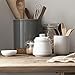 MODERN STYLE, CLEAN AESTHETICS: This isn't your grandmother's kitchen crock. Smooth lines give a sense of calm and simplicity while neutral colors make for a clean vibe. Perfect for the modern home. (Utensils not included)
