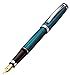 Fine point fountain pen. Dimensional blue color from a multi-layer high-gloss lacquering technique; hues change slightly, depending on the lighting. Solid brass construction with .999 platinum-plated fittings.