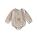 Newborn infant baby oversized sweatshirt romper, long sleeve crewneck cartoon bear embroidery front pocket waffle knit romper bodysuit, bottom snap closure for easy diaper changes, elastic waist design makes infants more comfortable