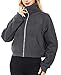 Features: solid color, full zipper, stand-up collar, cropped length,, long sleeves, drawstring hem, tightened cuffs, stretchy drawstring hem, stretchy to prevent cold, women's fall and winter warm short jacket, long sleeve stand-up collar jacket
