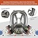 🍀【Sealed Comfortable & Ergonomic Design】The full face respirator mask reusable is made of high-quality silicone mixture material, non-toxic, soft, comfortable, durable, safe and healthy. Providing a comfortable feel on your skin, equipped with two-fold-elastic headbands that is easily adjusted. The full face cover and strap fit most head sizes and are designed for tight and comfortable wearing.