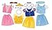 21 piece set includes 4 shirts, 3 skirts, 2 headbands, 1 tiara, 1 choker, 3 bracelets, 1 pair of earrings, 1 necklace, 3 rings and storage trunk