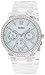 Boyfriend-style silver-tone watch featuring decorative non-working subdials and rhinestone-accented bezel