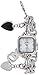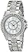 Silver-tone bracelet watch with rhinestones at triple-row band, lugs, and bezel featuring tonal dial with sparkling stones and Arabic hour indices
