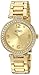 Gold watch round featuring gold dial, rhinestone bezel and gold link bracelet
