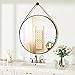 【Design】XRAMFY Hanging mirror has perfect size with leather lanyard features a modern style aluminum round mirror for Bathrooms Washroom Living rooms Entryways,in the vanity and more scene mirror