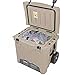 20" Strong durable tow handle and 2.5" thick 8" wheels, this towable ice cooler is ideal for camping, recreation, job sites, events, and more.