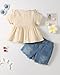 Package: Short sleeve ruffle top + denim ripped short pant. Suitable for spring summer casual wearing.