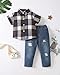 Material: Baby boy clothes denim summer outfits, by using quality cozy fabric, both the button plaid polo shirt top and the denim ripped pants are soft, breathable, stretchable and comfortable.