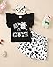 Package: Ruffle short sleeve cow letter print tops + cow pattern shorts + matching headband. Suitable for summer casual wearing.