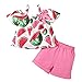Features: 2PCS baby clothes girl summer outfits. Sweet camisole design, keep cool in this hot summer. Lovely fruit pattern and bowknot on the top, make this baby girl summer outfits set cuter and more stylish. Your baby definitely will get lots of compliments in this season when wearing this baby clothes.