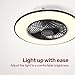 【YANASO upgraded ceiling fan - White】You can control everything with your phone or remote. Control ceiling fans light in Fan Lamp Pro App. Control fan: 6 fan speed, reverse, wind guide; control light: 3 color temp, dimmble, ambient background light; timer and schedule; Remote control memory mode.