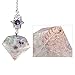 Pyramid Faceted Stone Pendulum: The stone pendulum consists of an crystal stone pendant and an alloy chain. The stone pendant is formed from copper coil, Fluorite and Rock Quartz stone chips filled in a resin mold that is hand cut into a pyramid shape; The alloy chain is decorated with crystal beads, a hollowed out Star of David and a dreamcatcher, which make the pendant more mysterious and beautiful. Please note that each stone is unique, so they may slightly vary in color, texture, and size.