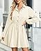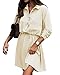 Features: This spring dresses for women 2023 featuring a lapel collar,roll-up long sleeve, button front, elastic drawstring tie waist, above knee-length;