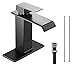 Waterfall Spout : The black bathroom sink faucet provides a clear and steady laminar stream, that provides a beautiful water presentation