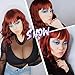 😍【Cannot Wait to Actually Style My Bangs!】 Love the fact the wavy bob wig bangs came longer, that way you can cut them or style them the way you want. Red bob wig. Very like the red wigs for women sideswept look, also can pull it into two low pigtails. Definitely recommend this short red wig.