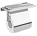 MULTI-FUNCTIONAL: This tissue roll holder with shelf is not just a bathroom paper holder, but also a wall-mounted bath accessory with storage shelf which can place mobile phone, air freshener or other small items and free your hands to do other things