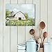 BARN PICTURES WALL DECOR: old white barn, blue sky cute and colorful wild flowers, spring and summer country scene, make people feeling relax. An impressive prints, suitable for decoration in farmhouses or kitchen dinning room