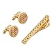 [Unique Design] Novelty tie clips and cufflinks are plated in real gold on brass material and inlaid with many small crystals. The cuff links closure part consists of the rugby ball's shaped mechanism. It has a spring and rotates 90 degrees.