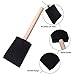 Durable foam paint brushes have securely glued foam tips on sturdy wooden handles.