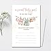 FULL SET of 25 elegant, floral wreath-themed invitations, 25 diaper raffle tickets, 25 book request cards and 25 envelopes. Cute floral design invitations will surely melt the hearts of your guests!