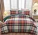 3Pcs Queen Comforter Set includes: 1 Comforter 90"x90" and 2 Pillowcases 20"x26". This red green plaid comforter offers a perfect balance between warmth and comfort, lightweight and soft with its down alternative filling, suitable for all-year-round use.