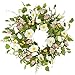 LIFELIKE GREEN SPRING WREATH: YNYLCHMX green wreath is surrounded by lush eucalyptus leaves and little white flowers that make this 18-inch wreath look more vivid and colorful, adding a fresh breath to your home around the whole year.