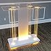 ★ Innovative Baffle Design: Acrylic LED Speech Podium is designed to keep your materials secure with a high book stop, preventing slips and slides. Made from white acrylic base, clear acrylic legs with LED lights, and a clear top panel, this Podium Stand Portable is perfect for conferences, trade shows, and presentations.