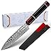 【NOT Lazer Etched】 Real Damascus knife is 100% forged from Japan's high-quality Damascus 67-layer steel, after high-tech vacuum heat treatment and nitrogen low-temperature tempering, greatly increasing the corrosion resistance, rust-resistant features; japanese kitchen knife hardness of 60 ± 2 ° Rockwell hardness, easily cut all kinds of fruits and vegetables.