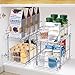 【Multi-purpose Bathroom or Kitchen Under Sink Organizer】Help To Tidy Up the limited space efficiently, and improve the space utilization rate, Such as under kitchen/bathroom sinks, cabinets, countertops,food pantries, offices, etc. The double-layer storage organizer used for storing and organizing cleaning supplies, bath items, kitchen bottles, spice bottles, medicine bottles, vitamins, water or drink bottle, jars, cans, and more items.