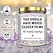 【Perfect House Warming Gifts】With the message of “You should have moved closer to me but congrats anyway" print on the front, This funny house warming gifts is suitable for your bestfriends, girlfriend, bestie, sister, wife, daughter, work friend, teachers and nurses etc. whenever they see this lovely lavender candle gift, they will be reminded of you and your friendship.