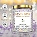 💖【100% Natural Soy Wax】💖:Our hand poured candles have a special soy wax blend and natural essential oils, which ensures that the scent will last the entire burn.Infused with premium lavender fragrances,are 3.7incheX 2.8inche and have an approximate burn time about 36 hours.
