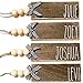 Each tag features natural wooden beads and a black and white Buffalo check bow