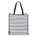 Reusable bag has long shoulder straps and features a classic striped print with a navy blue interior for a fun contrast. The Kate Spade New York logo is featured on a woven label tag for added flair