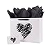 Including : 1 Pack white gift bag with handle, 4 sheet wrapping tissue paper in black, 1 greeting card