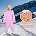 【One Piece Design & Multi Pockets】One piece design with front zipper, easy to wear and dress quickly. Colorful printed, 2 zippered hand pockets and 2 zippered chest pockets on the ski jackets to keep the hands warm.