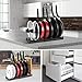 5 TIER DESIGN: The entire organizer is 12.2” high, with three 2.5” slots and one 3.5” slot to accommodate your larger saucepan. You can easily stack smaller pans and skillets within one slot to save more space.